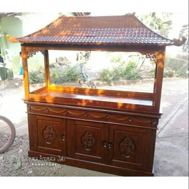 Meja Aquarium Atap Rumah Set Ukir Jati Uk 150 Furniture . Sumber Gambar : shopee.co.id
