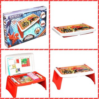 Deskripsi MEJA BELAJAR LIPAT ANAK KARAKTER NAPOLLY Ready Spiderman Frozen Meja Laptop Merek NAPOLLY berkarakter LISENSI ASLI ini merupakan meja serbaguna berbahan plastik Polypropylene yang didesain fun untuk anak anak Meja ini dapat dilipat daun meja dapat dibuka dan didalamnya dapat digunakan untuk menyimpan peralatan tulis atau gambar
